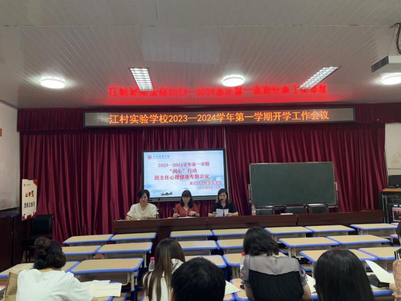8月28日下午,江村实验学校小学部在报告厅举行了2023-2024学年第一学期期初班主任“润心行动”专题会议及培训。