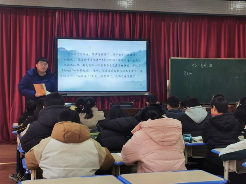 12月22日,中高语文教研组教师们在报告厅进行了本学期第八次教研活动,主题为《月光曲》研讨。由曹怡老师执教六年级《月光曲》一课。