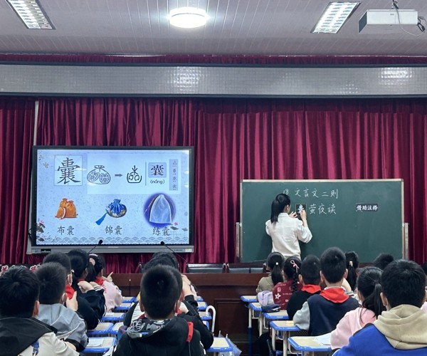 4月17日下午全体语文老师集中学校报告厅开展了语文教研活动,观摩额倪晓青老师和范卿老师的同题异构课《囊萤夜读》,课后,特级教师徐栋老师还针对小古文的教学进行了专题讲座,从小古文的朗读指导、意义的理解到思想情感的领悟,都进行了细致地阐述,对老师公开课教学也作了指导,让我们受益匪浅。会后,沈超艳老师和叶娟芳老师也分别谈了自己的听课感受。