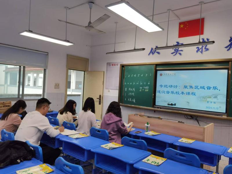 2024年11月15日上午一、二节课,音乐组全体老师集中西校区音乐教室2,开展了本学期第四次教研活动。本次活动的主题是专题研讨:聚焦区域音乐,建设音乐校本课程。具有区域性特点的音乐校本课程建设是音乐教学实践与研究的一个新视角。作为课程文化的一部分,它以中国传统音乐为研究对象,综合运用民族音乐学、人类学、文化地理学、民族学等学科多重系统的研究理念,凸显音乐学与多种学科之间的相互融合,具有人文性、民族性、区域性、实践性等特点。本次活动大家还一起商讨了每周三行美小舞台的表演班级和表演节目。