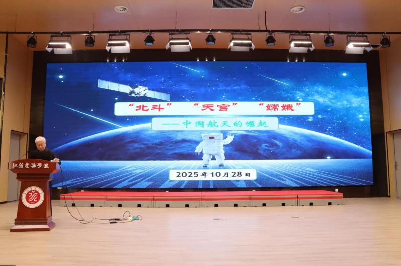 讲座由北斗导航系统到航天天宫空间站,再到嫦娥探月工程,深入浅出地阐述了我国航天科技的飞速崛起与广泛应用,从科技创新的前沿让学生感受到科技的无穷魅力,学生们享用了航天知识的饕餮盛宴。