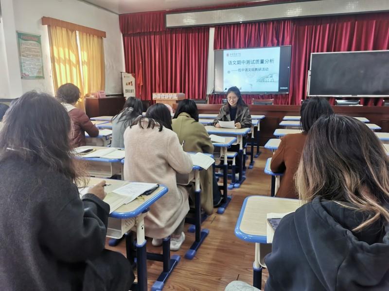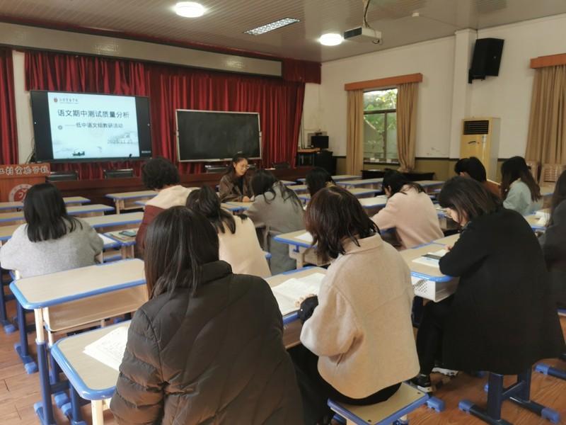 11月21日,低中语文教研组集中学校报告厅,开展了本学期第五次教研活动——语文期中测试质量分析。由谢紫燕老师针对二年级语文阶段性素养调研进行分析。本次调研以教材为依托,聚焦基础知识、语言运用与阅读理解能力,全面考查学生的语文核心素养。现将本次考试质量从整体情况、答题亮点与问题、教学建议三方面展开分析: